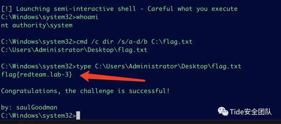 flag{redteam.lab-1}Congratulations, you got this: saul Saul123