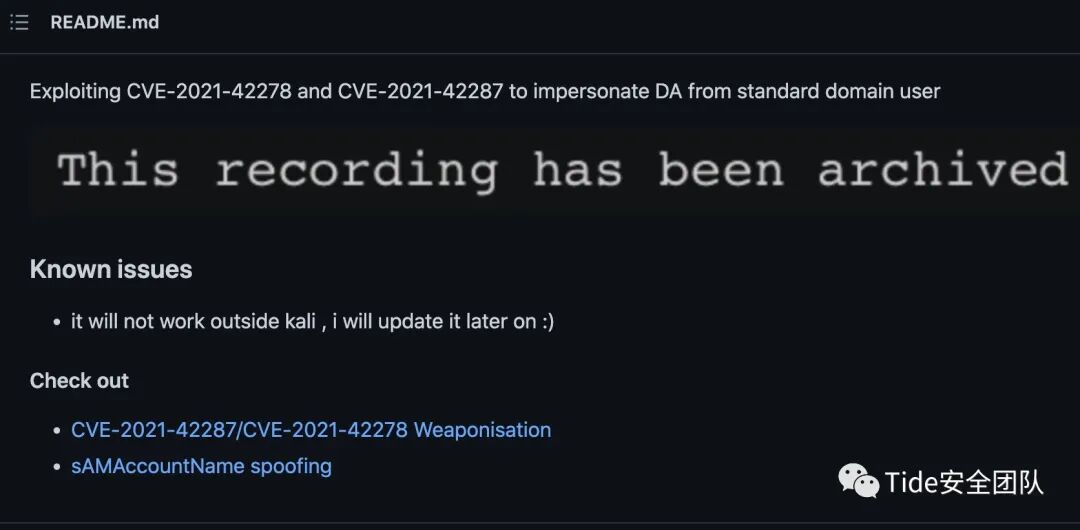 利用前段时间爆出的CVE-2021-42287、CVE-2021-42278拿来试一试