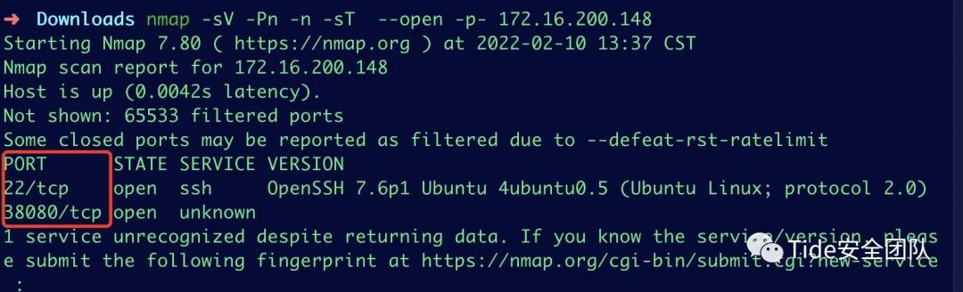 通过对目标地址全端口扫描,发现了22端口和38080端口开放,为此我们的思路大致为