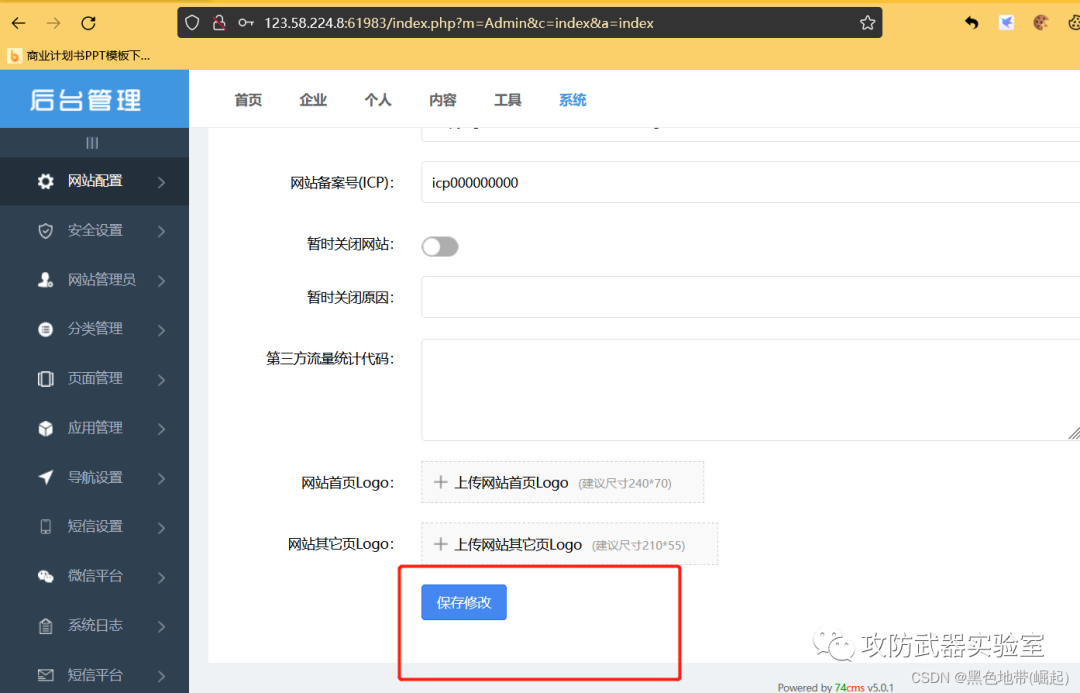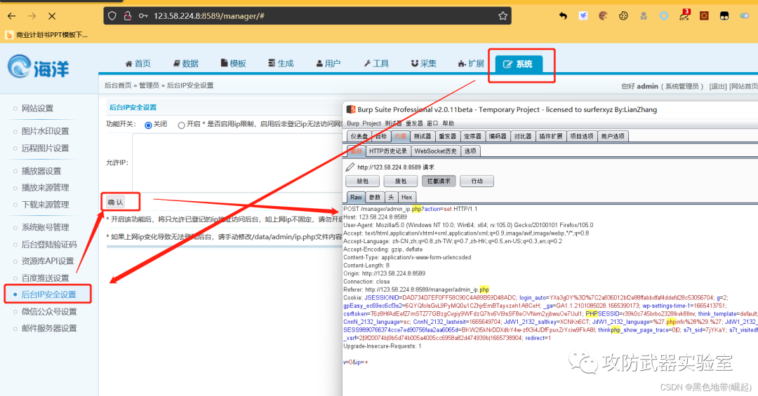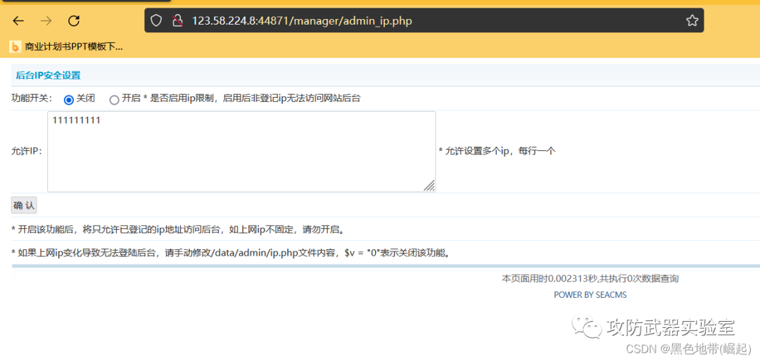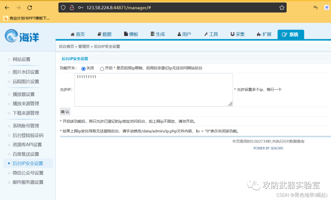 点击系统---->后台ip安全设置