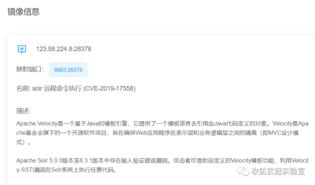 | 【漏洞复现-solr-命令执行】vulfocus/solr-cve_2019_17558 | 寻找模板(接口、配置文件)的命令执行漏洞 |