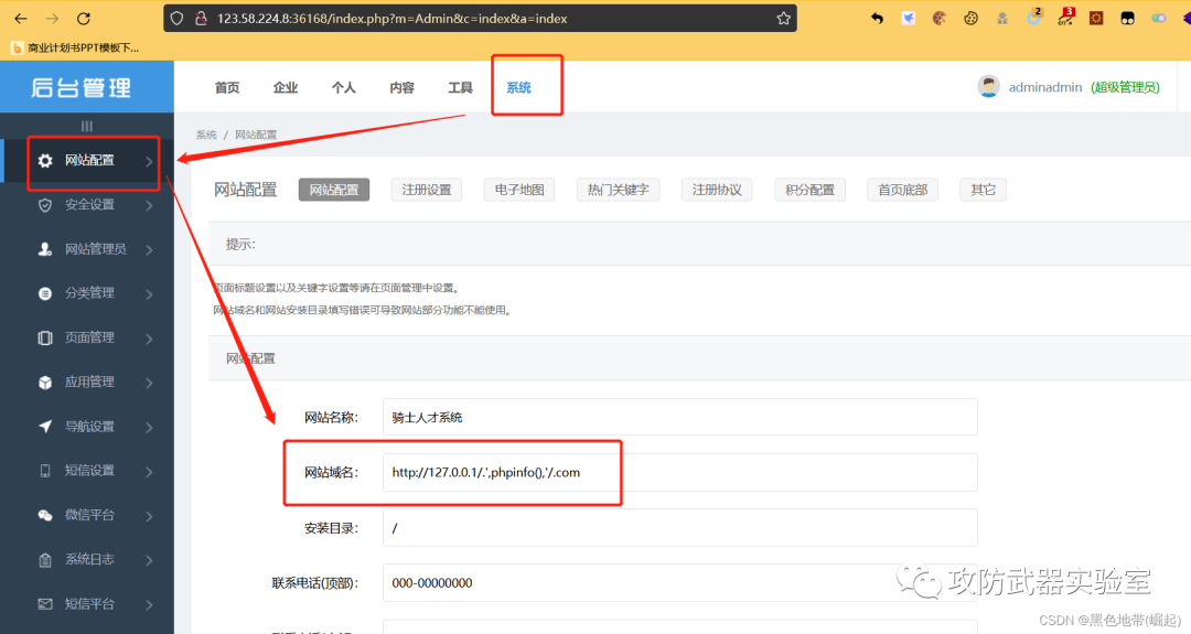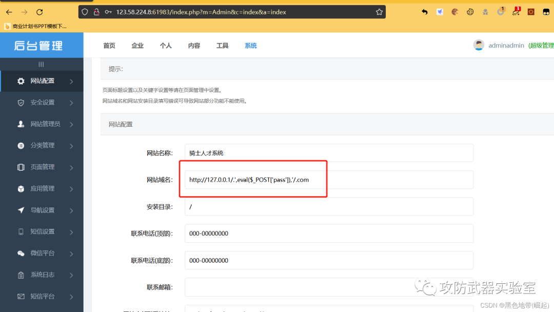骑士cms-代码执行