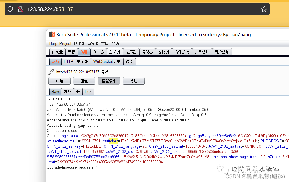 点击访问,与此同时,使用bp抓包