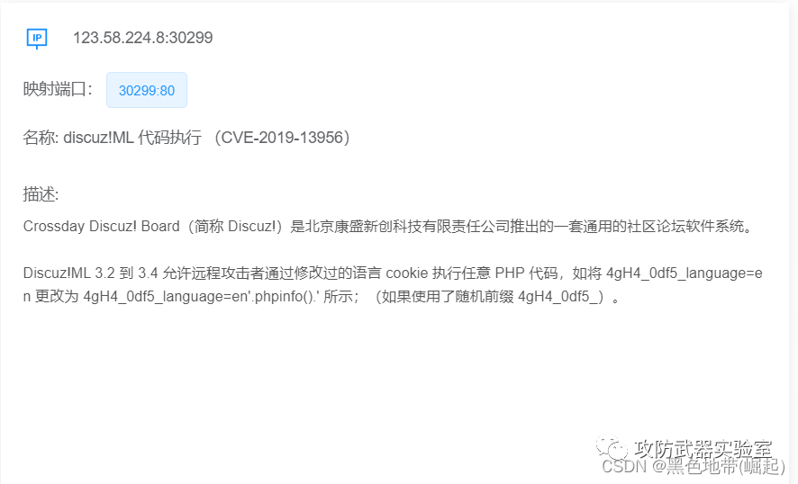 | 【漏洞复现-Discuz-代码执行】Discuz_CVE-2019-13956 | cookie中植入 |