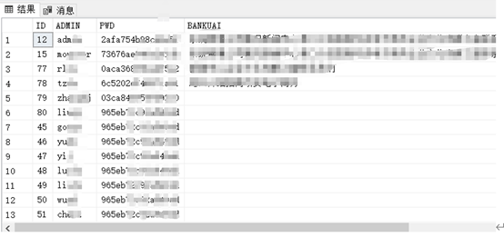 然后可以找对对应 SQL Server 数据库中存储的内容,可查询到对应系统的用户名和口令