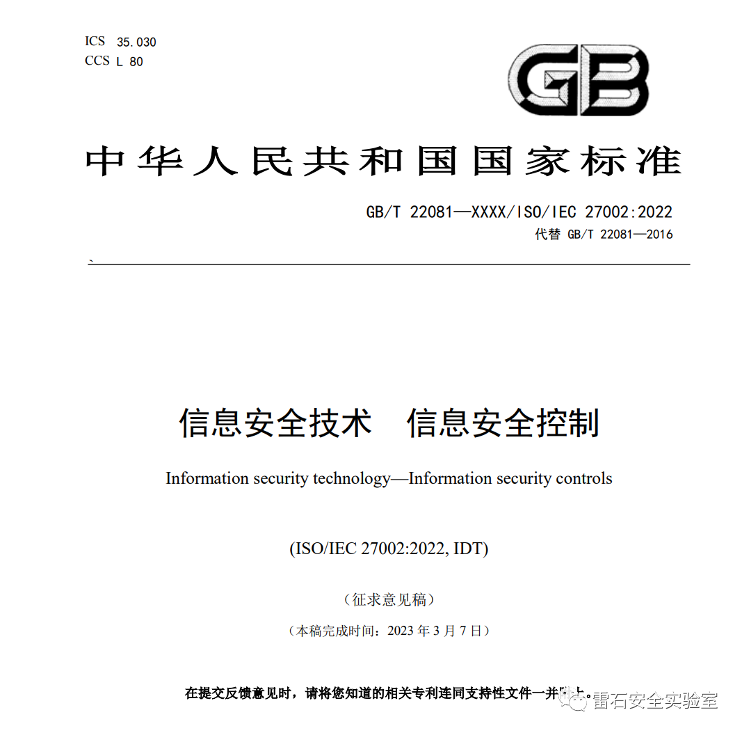 2、国家标准《信息安全技术 信息安全控制》征求意见稿发布