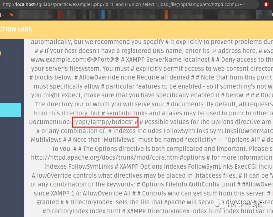 现在我们将使用load_file()函数来读取“ httpd.conf”