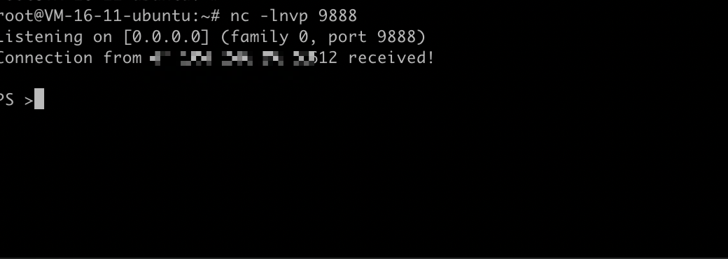 尝试使用powershell直接反弹出来,首先在vps上起一个监听