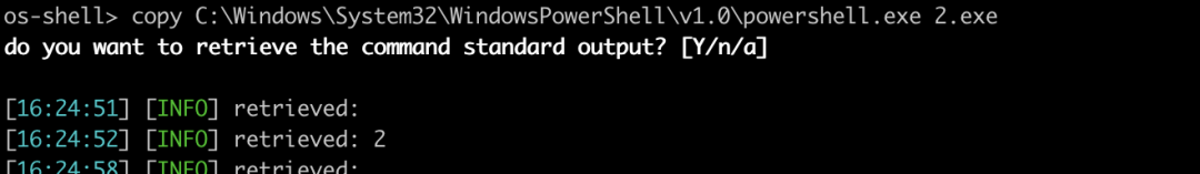 copy C:\Windows\System32\WindowsPowerShell\v1.0\powershell.exe 2.exe成功执行