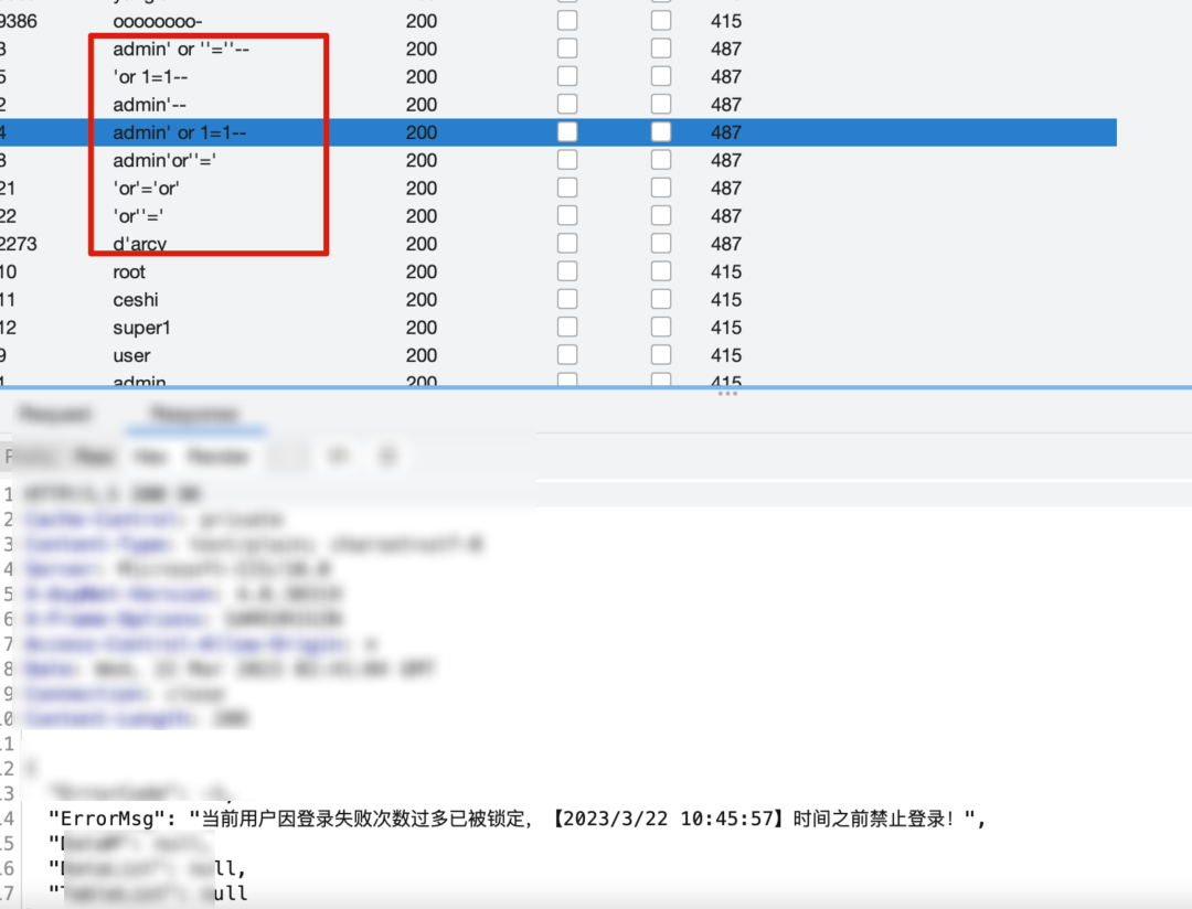 想着换一条思路,然后扫了一眼爆破的窗口发现一个问题,有几个特殊的用户名都是登陆次数过多被锁定了。