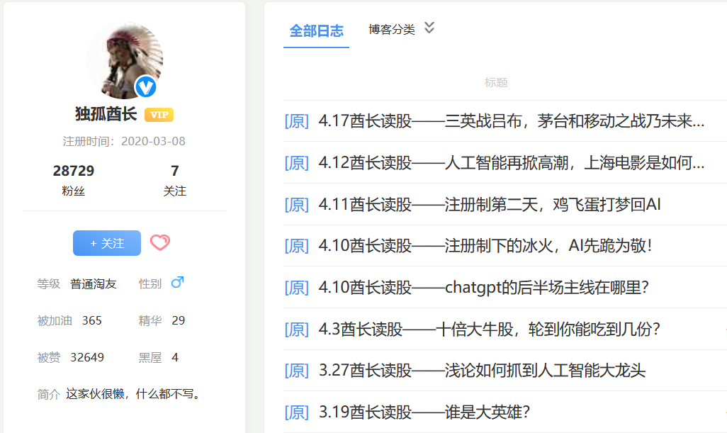 独孤酋长是一个很低调的大V擅长趋势,大屁股,这段的行情比较适合他,这几个月经常晒收益和天乐凡尔赛,我们都有共同的师傅《股票大作手回忆录》利弗莫尔,天乐学到皮毛,他学到精髓.天乐问他为什么不做小盘股,他回复天乐说流动性不足,无法承接他的资金........