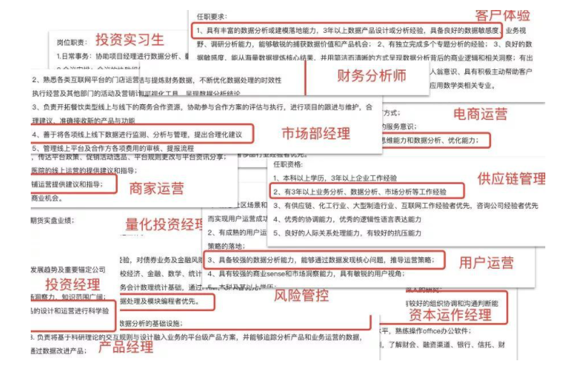 1. 能利用数据为公司做决策的中高级管理人才,他们通过数据捕捉市场机会,找到企业的发展趋势,例如CTO、CEO等。 2. 能利用数据为公司搭建数据网的专业人才,他们使用大数据,利用数据内涵和价值为项目所用,例如:数据工程师,数据经理等。 3. 利用数据为业务赋能的应用人才,他们利用数据信息和数据工具,为业务增长赋能,例如:市场营销、人力资源管理、运营等。