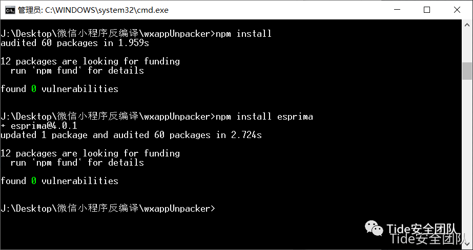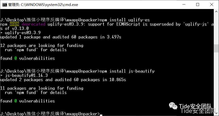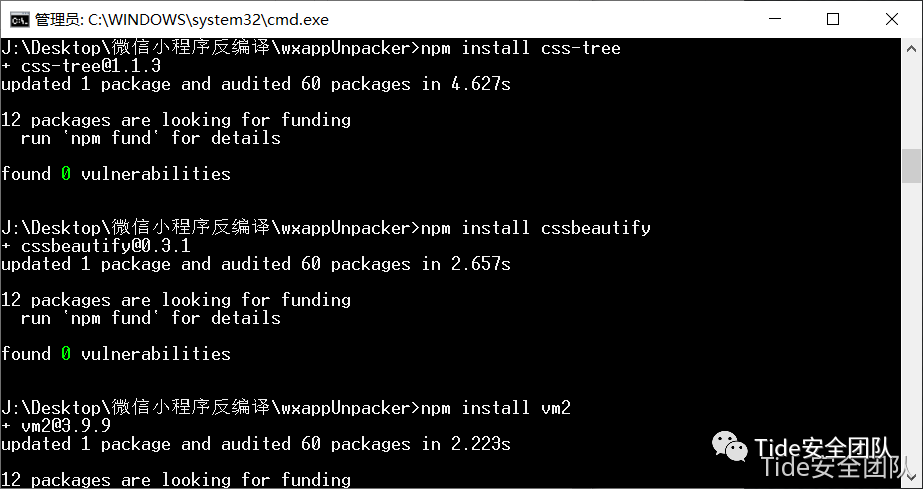 反编译如果使用过程中出现报错缺少相关组件,在根目录下使用cmd运行以下命令进行安装,通过我分享的工具包中是已经更新安装完的在node_modules文件下,默认不需要再重新安装,如执行存在相关组件问题可尝试重装解决。