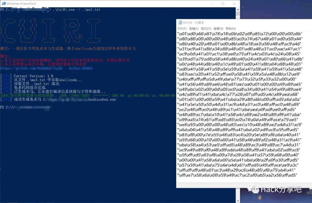 Usage of CuiRi.exe:-f string 通过shellcode生成免杀马-manual 查看shellcode生成方法