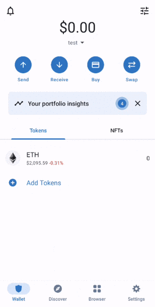 当用户离开 DApp Browser 界面切换到钱包其他界面如示例中的 Wallet、Discover 等界面,由于钱包为了不影响用户体验和避免重复授权,此时 Wallet Connect 的连接是没有断开的,但是此时用户却可能因为恶意 DApp 突然发起的签名请求弹窗而误操作导致被钓鱼转移走资产。