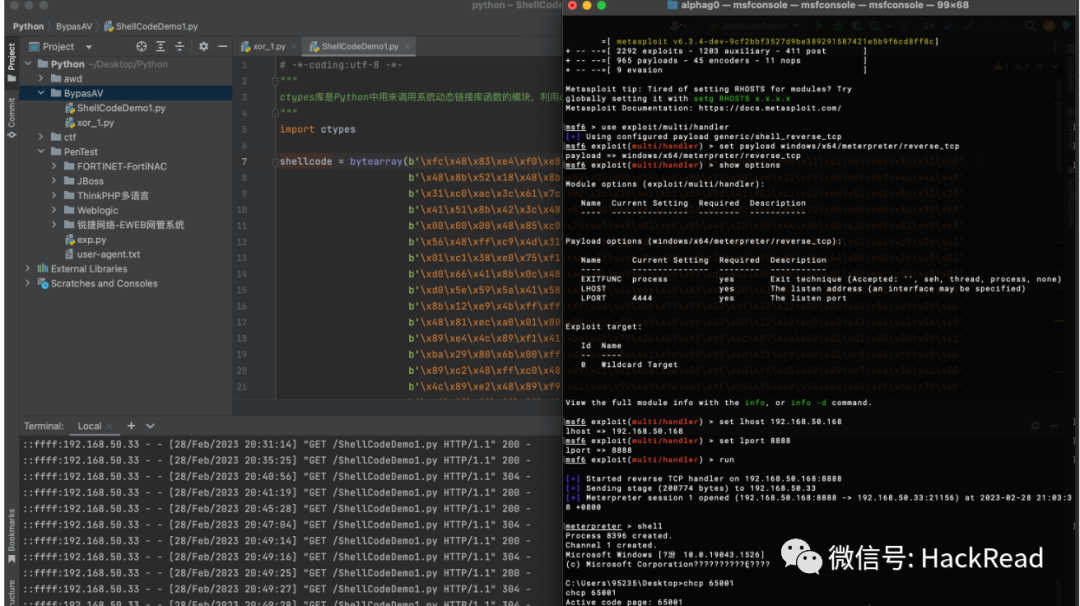 由于shellcode是一串可执行的二进制代码,因此需要通过开辟一块具有可读写、可执行的区域来利用它。这里利用python语言中的ctypes库来实现该过程。