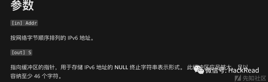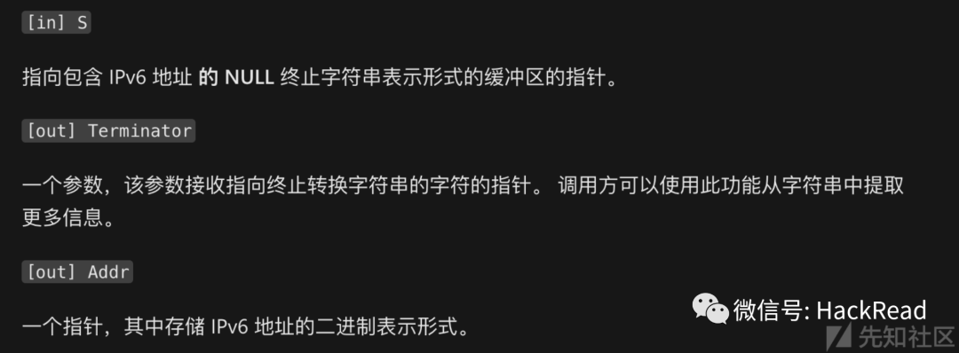 RtlIpv6StringToAddressA:RtlIpv6StringToAddress函数将IPv6地址的字符串表示形式转换为二进制IPv6地址。