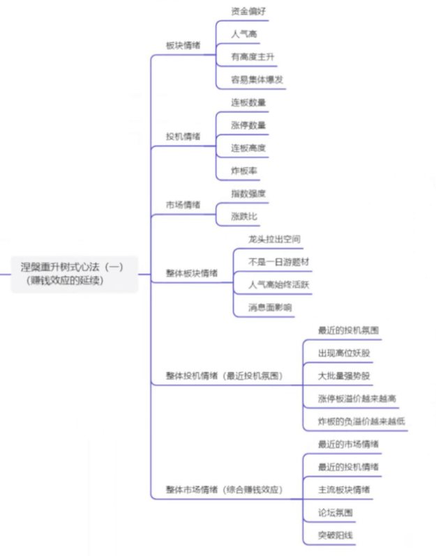 一、树干(交易的总纲) 投机做的到底是什么? 赚钱效应(情绪)的延续,对资金的吸引,赚钱资金来,亏钱资金走。跟着情绪(赚钱效应)走,千万不要自以为是,以前认为次新股只能做新开板的,结果贵州燃气 那一批就是超跌走的强。