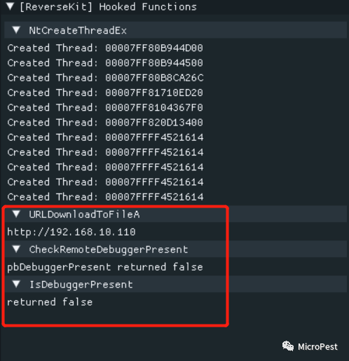 URLDownloadToFileA(NULL, "http://192.168.10.110","f.txt",0, NULL);