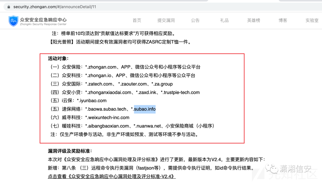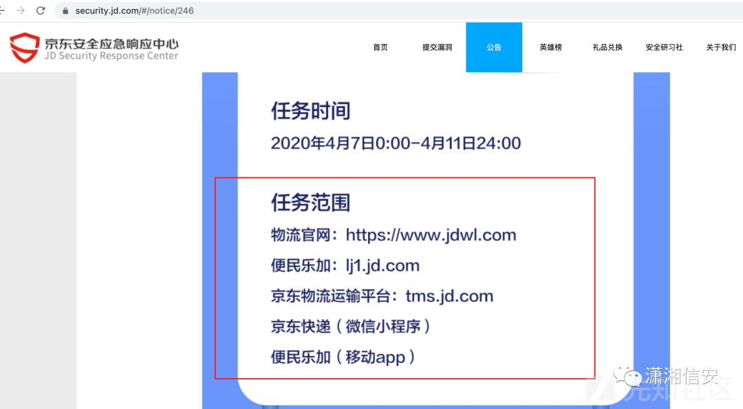 在应急响应官网,往往会有一些活动的公告,在里面可以获取到相应的测试范围。