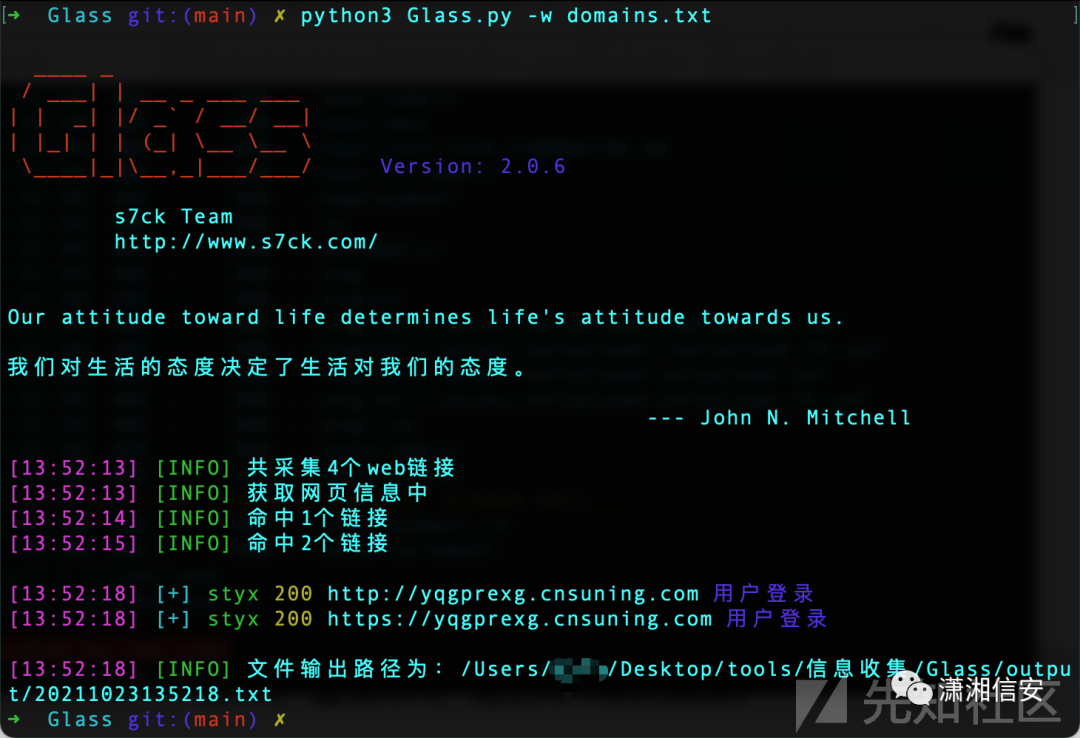 https://github.com/s7ckTeam/Glasspython3 Glass.py -u http://www.examples.com // 单url测试python3 Glass.py -w domain.txt -o 1.txt // url文件内