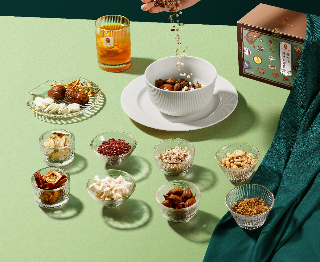 为达到营养均衡的概念,雷允上还在茶包中配比了: 云贵高原一带的苦荞麦;颗粒饱满、色泽鲜亮的清火高手安徽栀子;味道清香的东北糙米;内热消渴的湖南玉竹,来达到更好的效果。