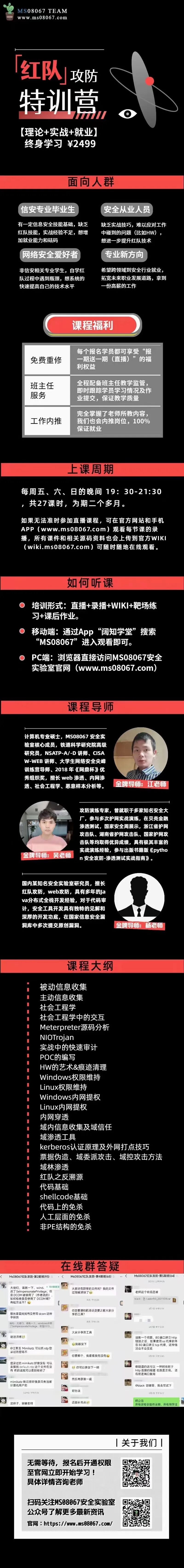 感谢大家对MS08067安全实验室的认可,正是因为有你们,实验室的红队安全攻防课程已经开到了第九期,即将在5月份迎来第十期,感谢所有学员对我们实验室的信任,我们也很开心能够给学员带来一份旷阔的天地!