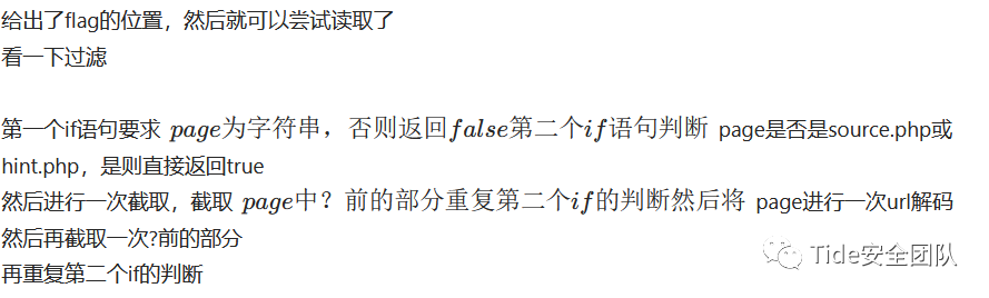 Welcome to index.php<?php//flag is in flag.php//WTF IS THIS?//Learn From https://ctf.ieki.xyz/library/php.html#%E5%8F%8D%E5%BA%8F%E5%88%97%E5%8C%96%E9%AD%94%E6%9C%AF%E6%96%B9%E6%B3%95//And Crack It!class Modifier {protected $var;public function append($value){include($value);}public function __invoke(){$this->append($this->var);}}class Show{public $source;public $str;public function __construct($file='index.php'){$this->source = $file;echo 'Welcome to '.$this->source."<br>";}public function __toString(){return $this->str->source;}public function __wakeup(){if(preg_match("/gopher|http|file|ftp|https|dict|\.\./i", $this->source)) {echo "hacker";$this->source = "index.php";}}}class Test{public $p;public function __construct(){$this->p = array();}public function __get($key){$function = $this->p;return $function();}}if(isset($_GET['pop'])){@unserialize($_GET['pop']);}else{$a=new Show;highlight_file(__FILE__);}