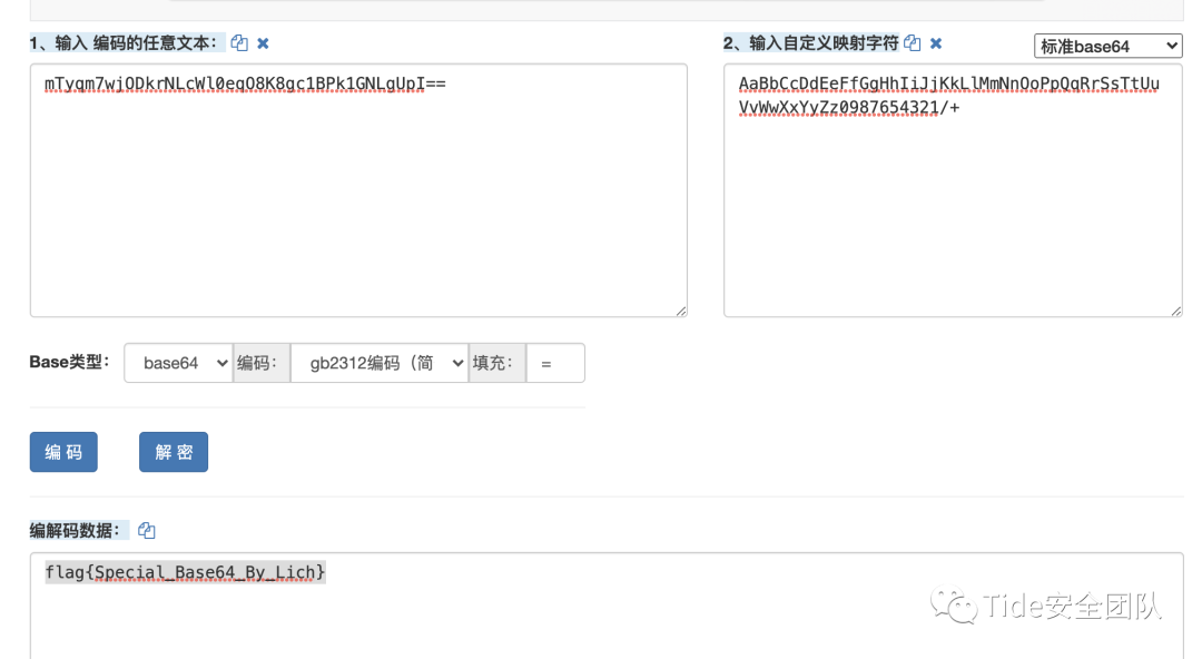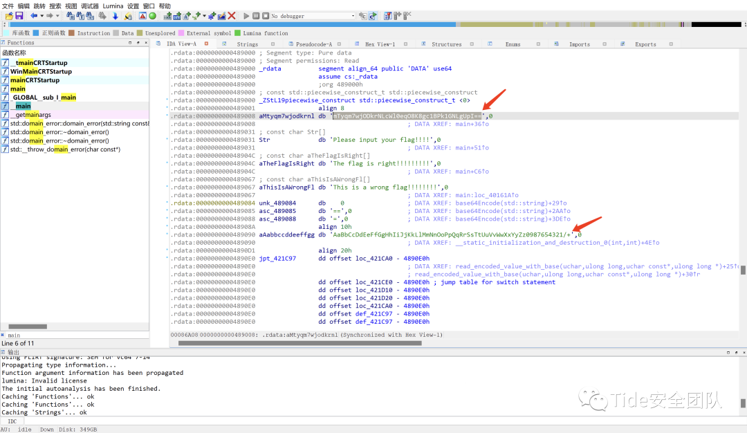 拿到题目运行一下,丢到ida里,直接看到一串base64,还有一串码表