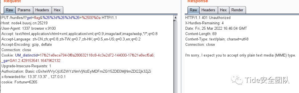 base64加密一下player:abc(密码没要求随便输一个)加密后是Basic cGxheWVyOmFiYw==放到authorization里