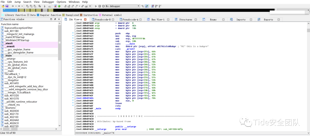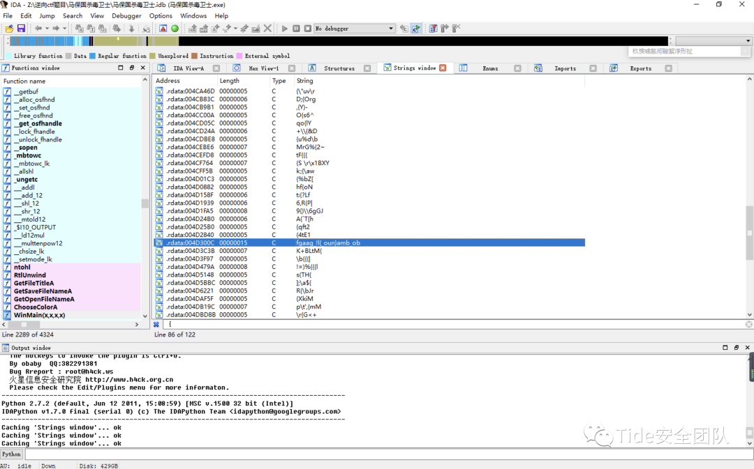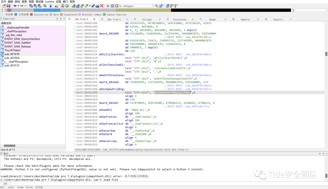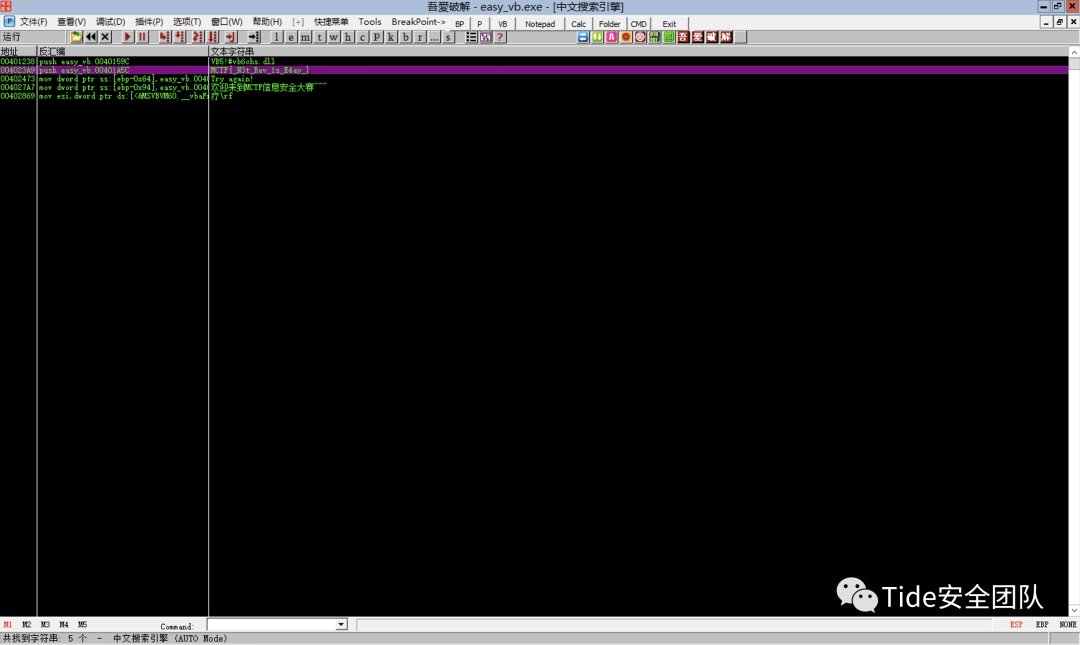 这里我们不用按键精灵,使用ida打开,发现一串字符串。