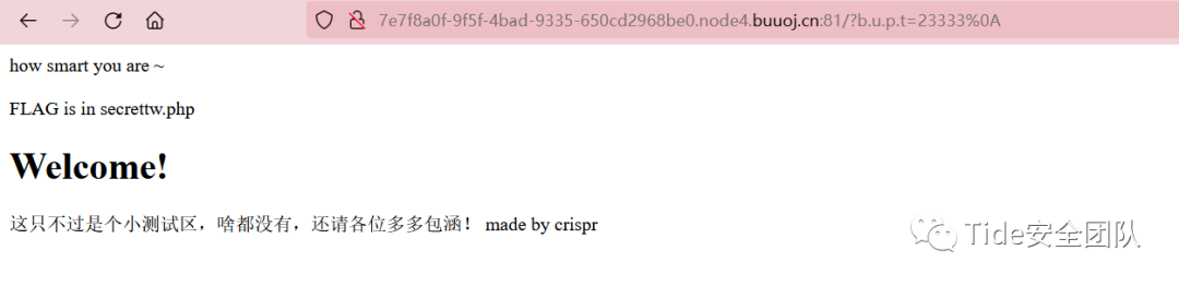 要求我们GET传参b_u_p_t,不等于23333且能正则匹配,%0a换行绕过