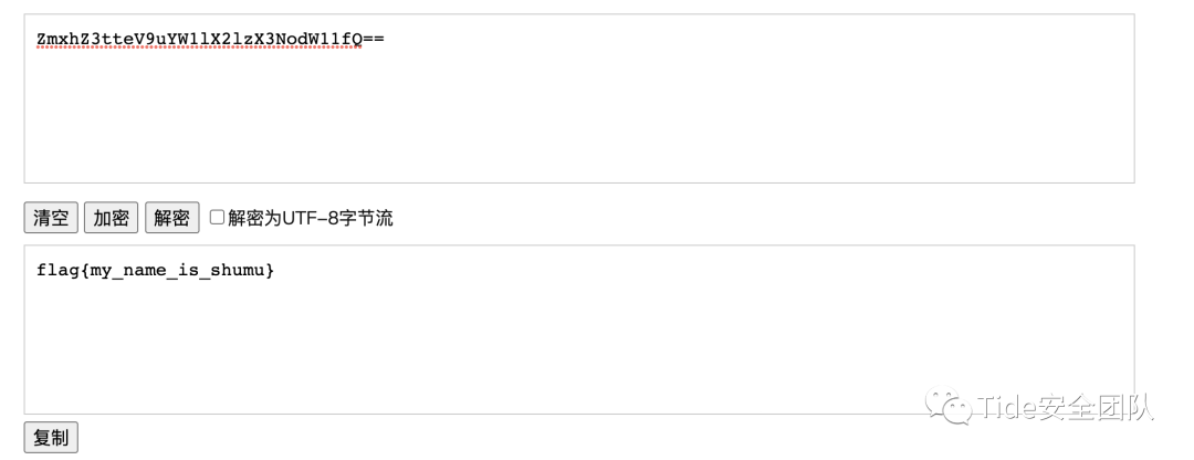一开始以为是base64,后来发现解不出来,看了看评论说是base58,在线解密得到flag