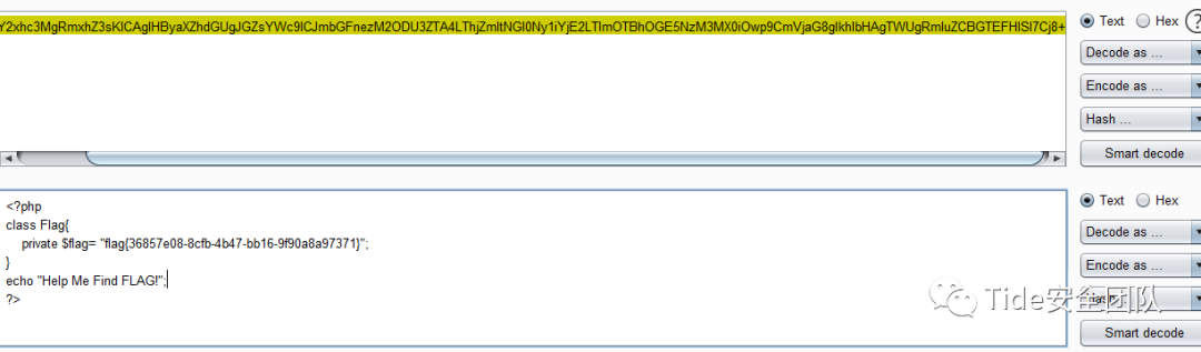 O:4:"Show":2:{s:6:"source";O:4:"Show":2:{s:6:"source";N;s:3:"str";O:4:"Test":1:{s:1:"p";O:8:"Modifier":1:{s:6:"*var";s:8:"flag.php";}}}s:3:"str";N;}再用url编码后构造payload就可以了,但是读取不到东西,换一下伪协议filter用base64读取