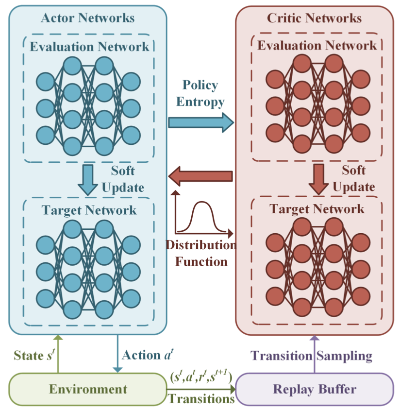 1)本文提出了一种通过引入软状态-动作奖励的概率分布函数改进的SAC(MSAC)算法来解决经典SAC算法中Q值估计不精确的问题。