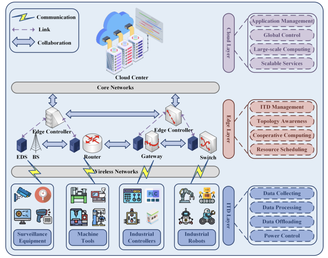 工业物联网通过工业资源的网络互连、数据互通和系统互操作达到资源的高效利用,从而构建服务驱动型的新工业生态体系。然而,传统的云计算或终端计算模式无法满足工业物联网应用的资源密集型和低延迟需求,边缘计算便成为实现异构资源在工业终端设备(ITD)附近迁移的强大工具。由于工业物联网的异构性,需要考虑不同网络实体的协同计算和异构资源的协同分配与调度问题。因此,迫切需要设计一种协同的合作数据卸载和异构资源调度方法以保证不同业务场景下服务质量(QoS)要求。本文针对这一问题,设计了一种基于QoS驱动的分布式决策(QDDM)框架,该框架将原问题分解为工业终端设备(ITD)端DO和边缘服务器(EDS)端RS两个子问题并求解,增强了各网络节点的数据管理和调度自主权。