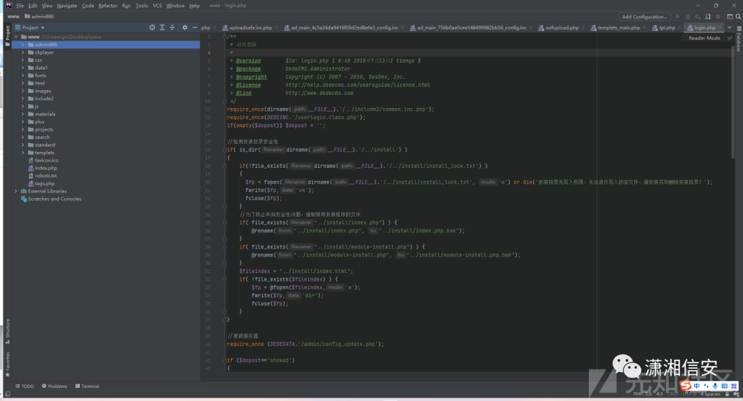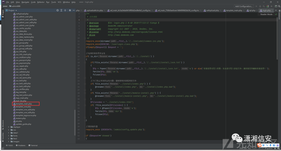 用泄露的admin/admin888进入后台后,发现版本信息为dedecms PS1