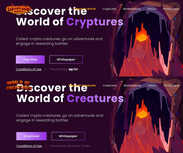 真实游戏的网页(上)和假冒游戏的网页(下)