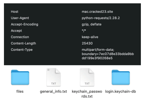 5.它试图将收集到的信息以Zip文件的形式发送到命令与控制(C&C)服务器mac[.]cracked23[.]网站。