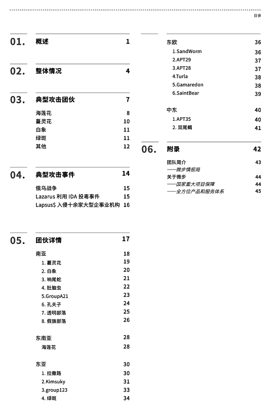 东南亚、东亚、东欧、中东地区更多团伙内容需查看完整版本报告。完整版报告目录一览: