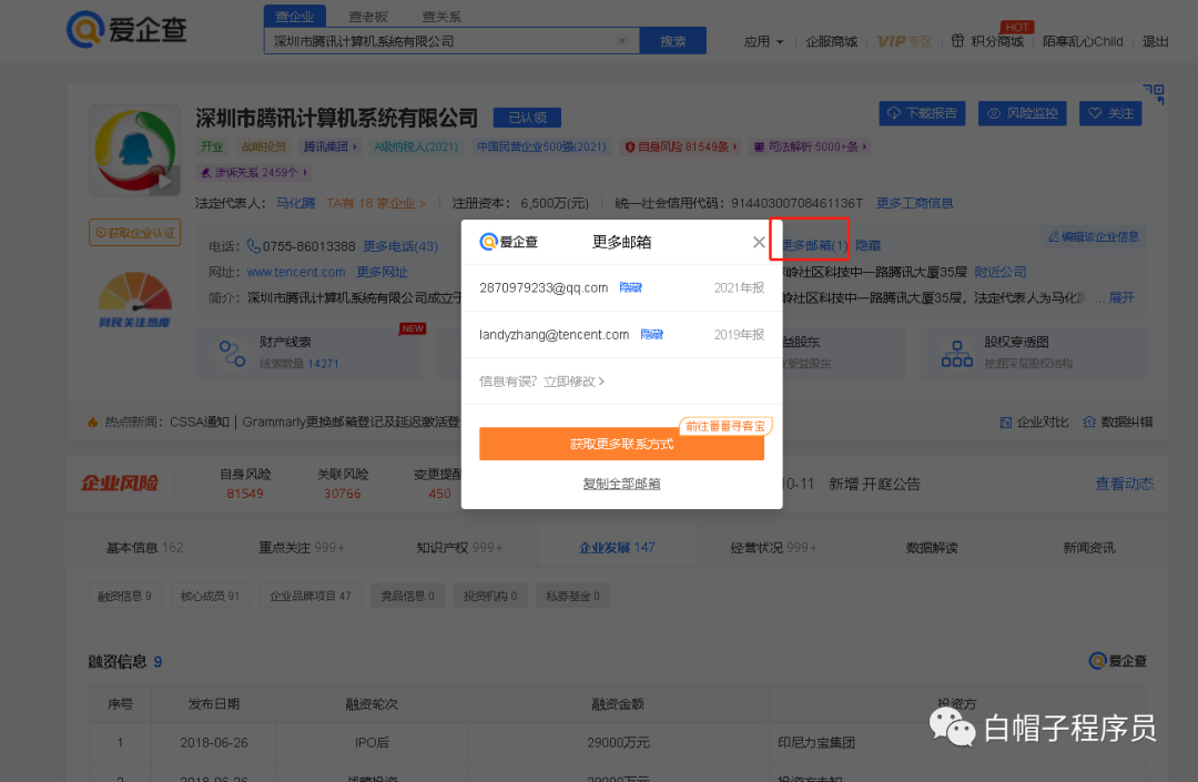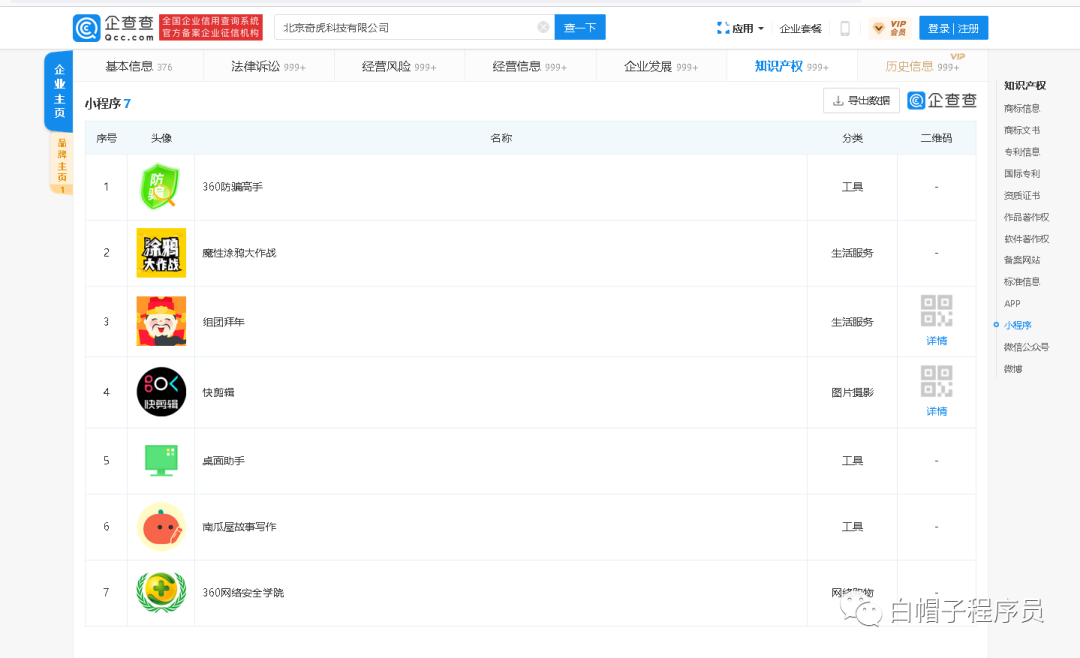 | 天眼查、企查查、搜狗搜索引擎 | 公司注册域名、微信公众号、APP、软件著作权等 |