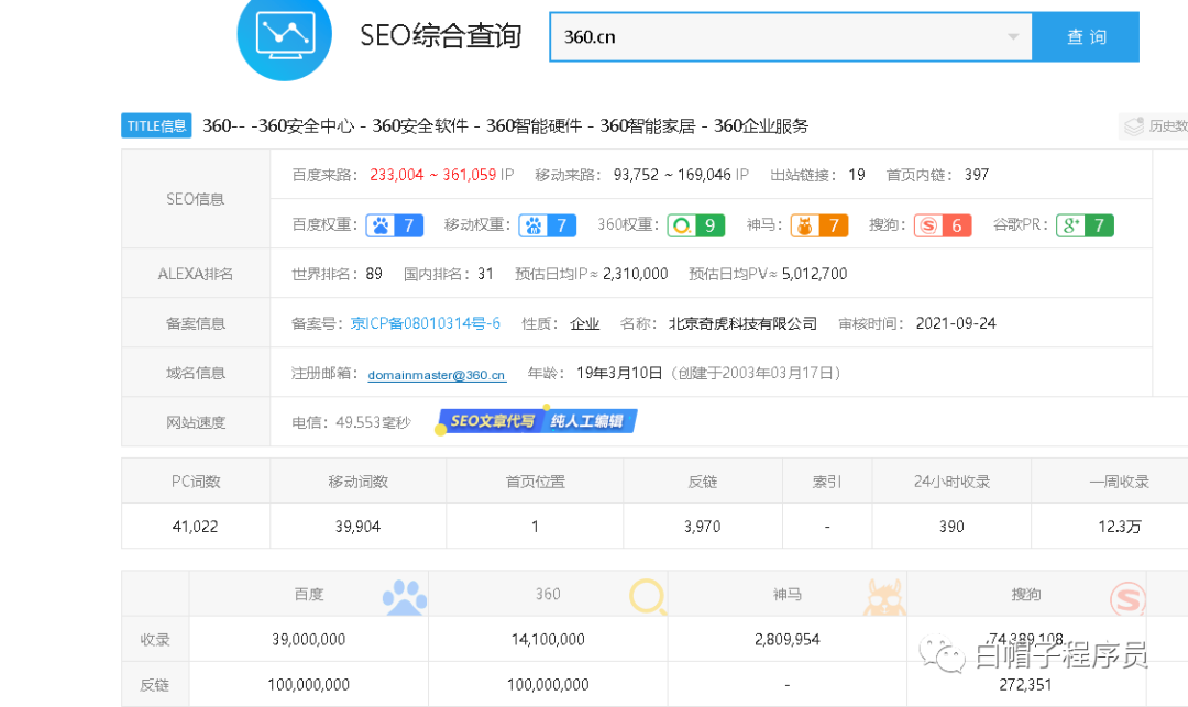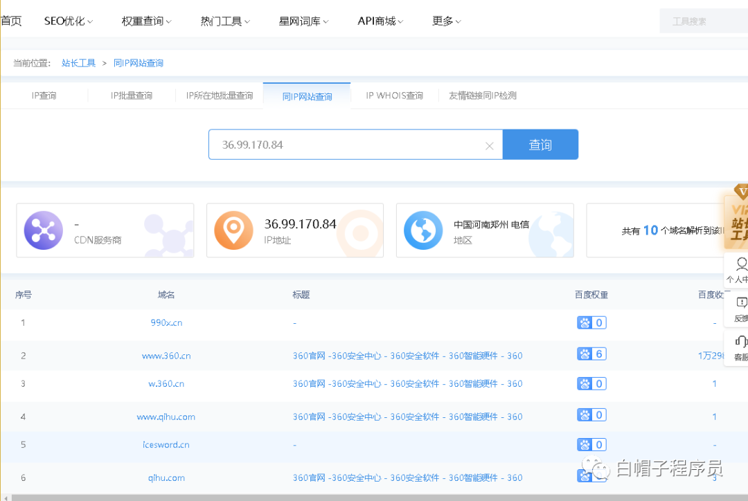 | 爱站、站长工具 | Whois、备案号、权重、公司名称等 |