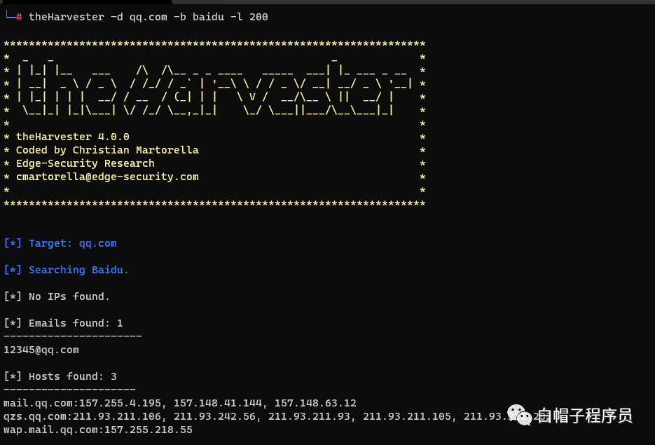 调用:脚本借用了ksubdomain爆破子域名和theHarvester收集邮箱,感谢ksubdomain和theHarvester作者